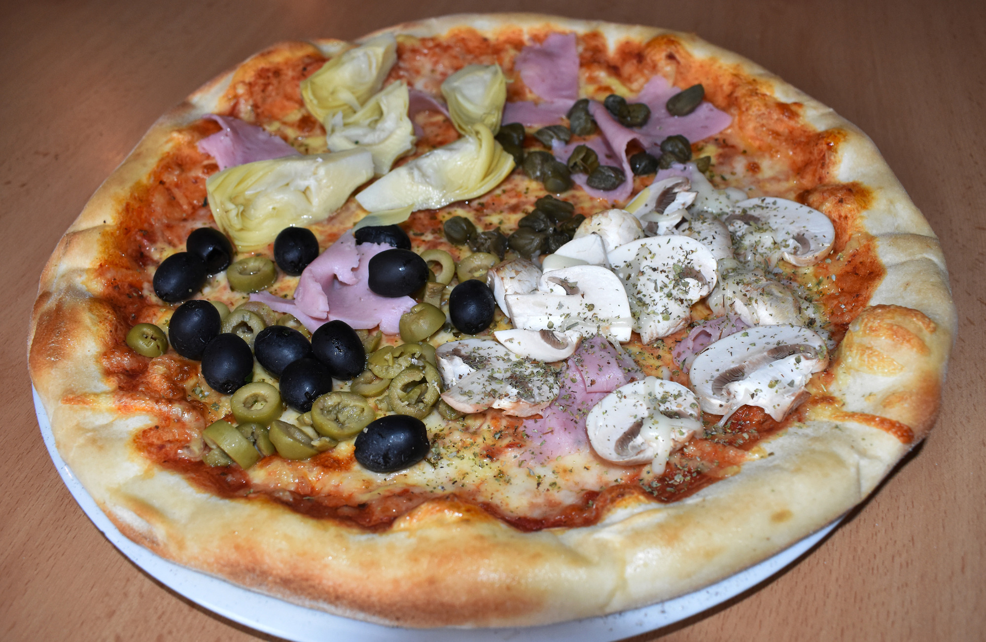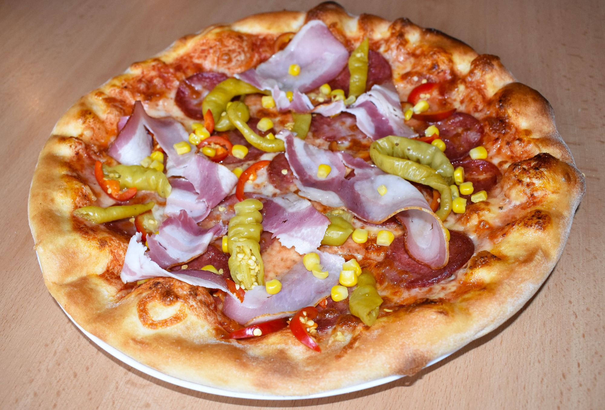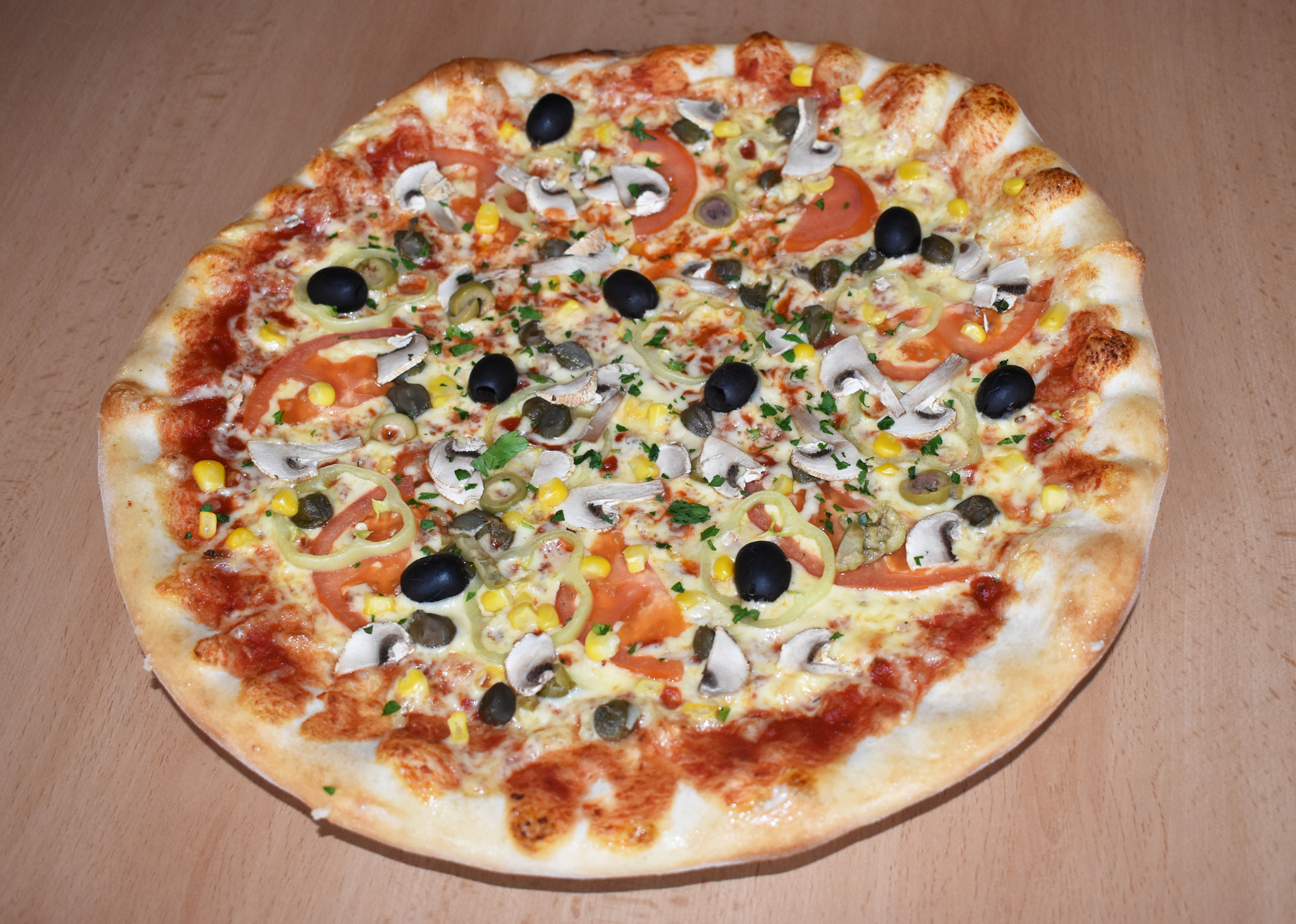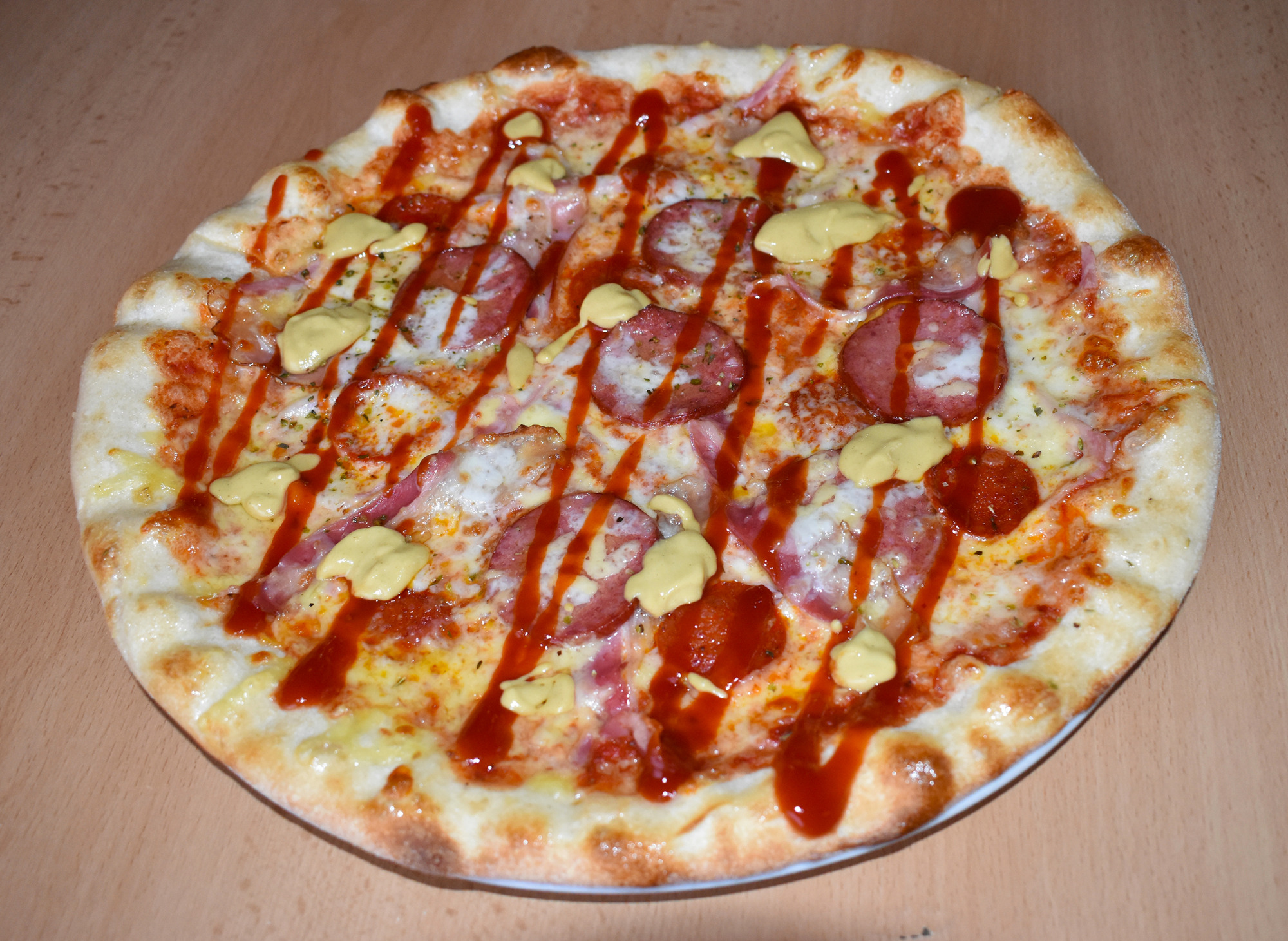500g, paradajkový základ, syr, šunka, niva, olivy, paradajka